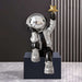 This striking resin astronaut sculpture blends modern artistry with playful design, making it a captivating centerpiece for any indoor space. Featuring a sleek silver-suited astronaut seated on a dark base, one hand raised high to hold a gleaming gold star, this vertical novelty statue adds a sense of wonder and ambition to your dining room, living space, or office. The reflective mirrored helmet captures surrounding light and movement, creating dynamic visual interest in contemporary or minimalist interiors.