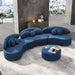 This sectional sofa stands out with its modern, curved design and plush velvet upholstery, which offers not only a stylish aesthetic but also unmatched comfort. Imagine sinking into its soft cushions after a long day, with its high-density foam providing the perfect balance of support and coziness. The modular configuration allows for versatile arrangements, adapting easily to your living space, whether you're hosting a lively gathering or enjoying a quiet evening at home.