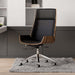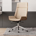 Elevate your workspace with this modern executive chair, designed for both style and comfort. Featuring eco-friendly faux leather upholstery and a solid wood back, this chair is the perfect blend of sophistication and functionality. Its streamlined design allows for easy mobility, making it an ideal choice for any office or home workspace.