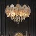 This statement chandelier is not just a lighting fixture; it's an art piece that instantly elevates your home décor with its stunning sparkle. The intricate crystal decorations reflect light beautifully, creating a warm and layered atmosphere that is ideal for romantic evenings or lively family gatherings. Its wave-shaped edges introduce a sense of movement, making it a captivating addition to any space.