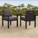 Imagine enjoying sunny afternoons and warm evenings seated in these beautifully designed chairs. Their sleek frames and plush cushions invite you to relax and unwind, making them perfect for outdoor gatherings or quiet moments alone. With the natural teak wood accents contrasting elegantly with the dark gray frame, these chairs not only provide comfort but also elevate the style of your outdoor space.
